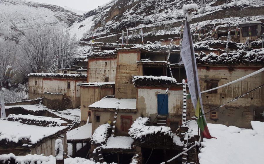 मुस्ताङका उच्च भेगमा भारी हिमपात ।